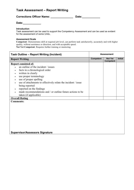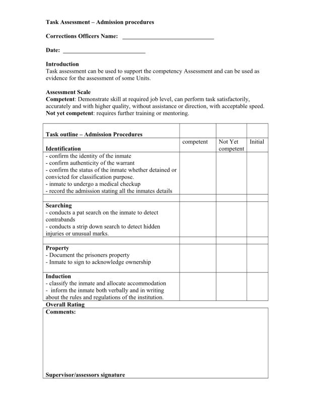 Introduction Task assessment can be used to support the Competency Assessment and can be used as evident